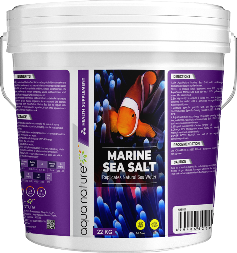 AquaNature Marine Sea Salt is made up of all of the macro elements and trace elements in a natural balance, contained within the ocean, and it is free from artificial additives, nitrates and phosphates. The trace elements remain completely soluble and bicarbonates which stabilize the aquariums alkalinity and pH. AquaNature Marine Sea Salt is an ideal foundation for the care and growth of all marine organisms in an aquarium. Use seawater prepared with AquaNature Marine Sea Salt for regular water changes in your seawater aquarium, to start a new aquarium and to re- equilibrate the pH of a tank.