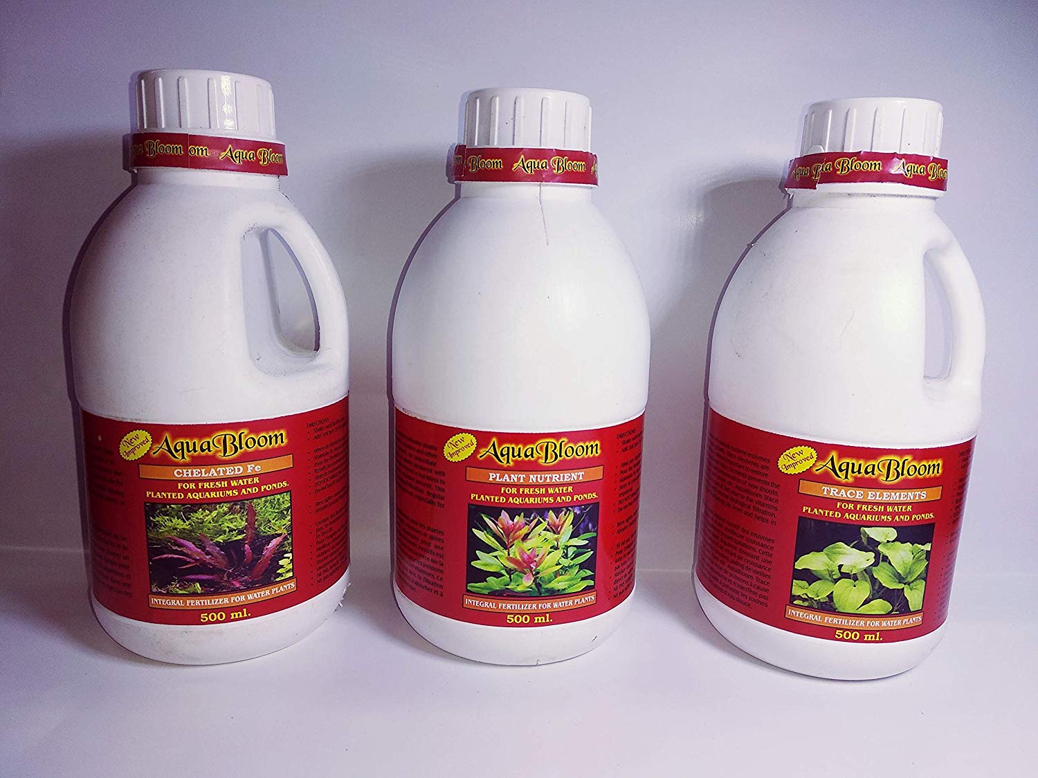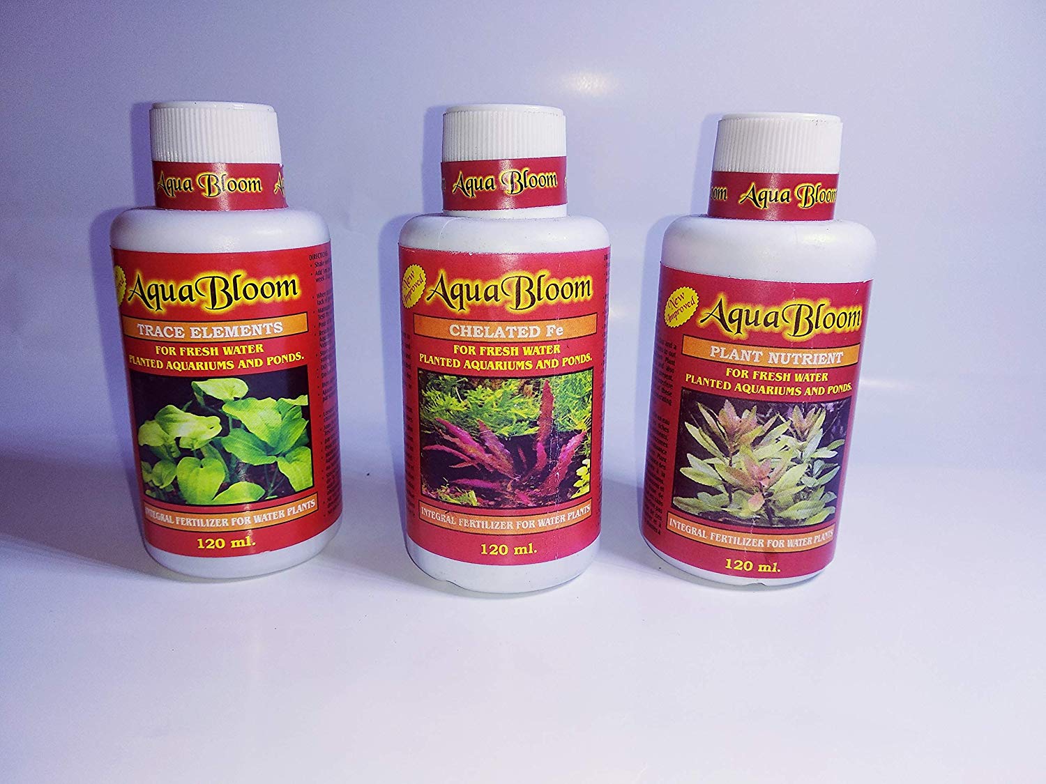 Chelated Fe-AquaBloom Chelated Fe is a highly concentrated ferrous iron supplement derived from unique organic iron compounds. Since plants require higher quantity of iron and absorb it in ferrous state, AquaBloom Chelated Fe is designed for water plants to give an enhancedcolor and texture to plants. AquaBloom Chelated Fe is harmless to fish and invertebrates. This product is safe for use in aquariums and will not interfere with normal biological filtration. Plant Nutrient-AquaBloom plant nutrient is a comprehensive plant supplement for natural freshwater plants containing the rich assortments of macro and micro elements, trace elements, vitamins and other essential nutrient enzymes beneficial for the water plants for a healthy growth. An immediate improved result of Aquabloom Plant Nutrient is fast and a lush growth of plants prepared with specific nutrients to out compete algae growth in aquariums. AquaBloom Plant Nutrient is harmless to fish and invertebrates and also enhances the slime coat of fish due to the vitamins present. Trace Element -AquaBloom Trace Elements supplies a broad range of trace elements with natural nutrient enzymes demonstrated to be necessary for proper plant health and a better lush growth.Trace elements are normally depleted by utilization ,oxidation and precipitation.This procedure makes it important to restore trace elements on a regular basis giving a steadiness to water plants. Aquabloom Trace Element prevents the deformation and stunted growth of young leaves,Yellowing of the margins and deterioration of new shoots,paling of old leaves,chlorosis,a yellowing or whitening of plant leaves and stems etc. Aquabloom Trace Elements is harmless to fish and invertebrates and also enhances the slime coat of fish due to the vitamins present.This product is safe for use in aquariums and will not interfere with normal biological filtration.Indicated dosing after water change helps prevent toxins resulting from fluctuating ph level and helps