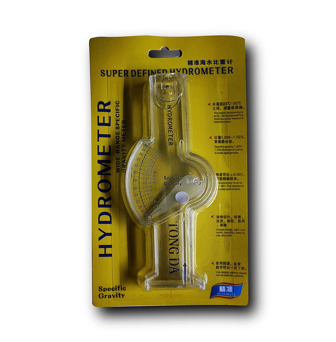 AquaNature Tong Da Super Defined Hydrometer Salinity Specific Gravity Testing Tool for Saltwater Aquarium