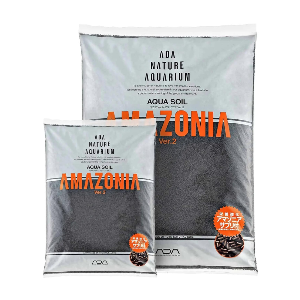 - Aqua Soil Amazonia Ver 2 uses black soil for a raw material and it stands out against the leaf color of aquatic plants, and also includes Amazonia Supplement to enrich nutrients