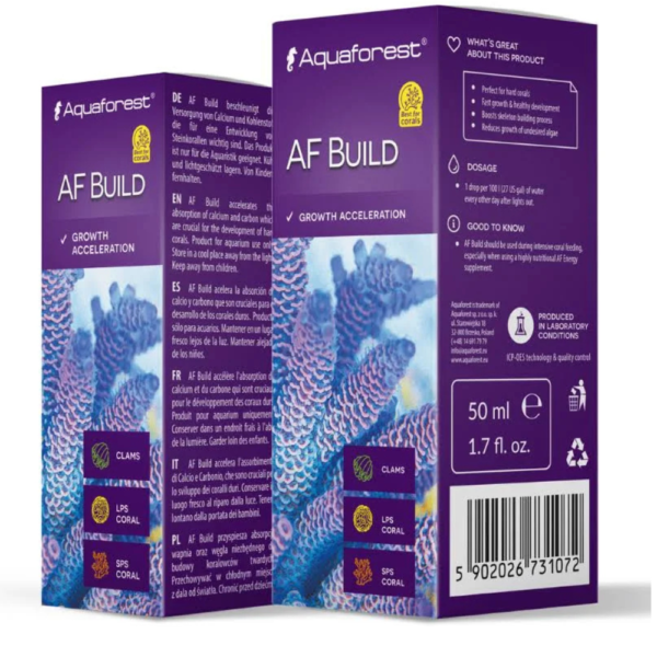 - AF Build accelerates the absorption of calcium and carbon which are crucial for the development of hard corals