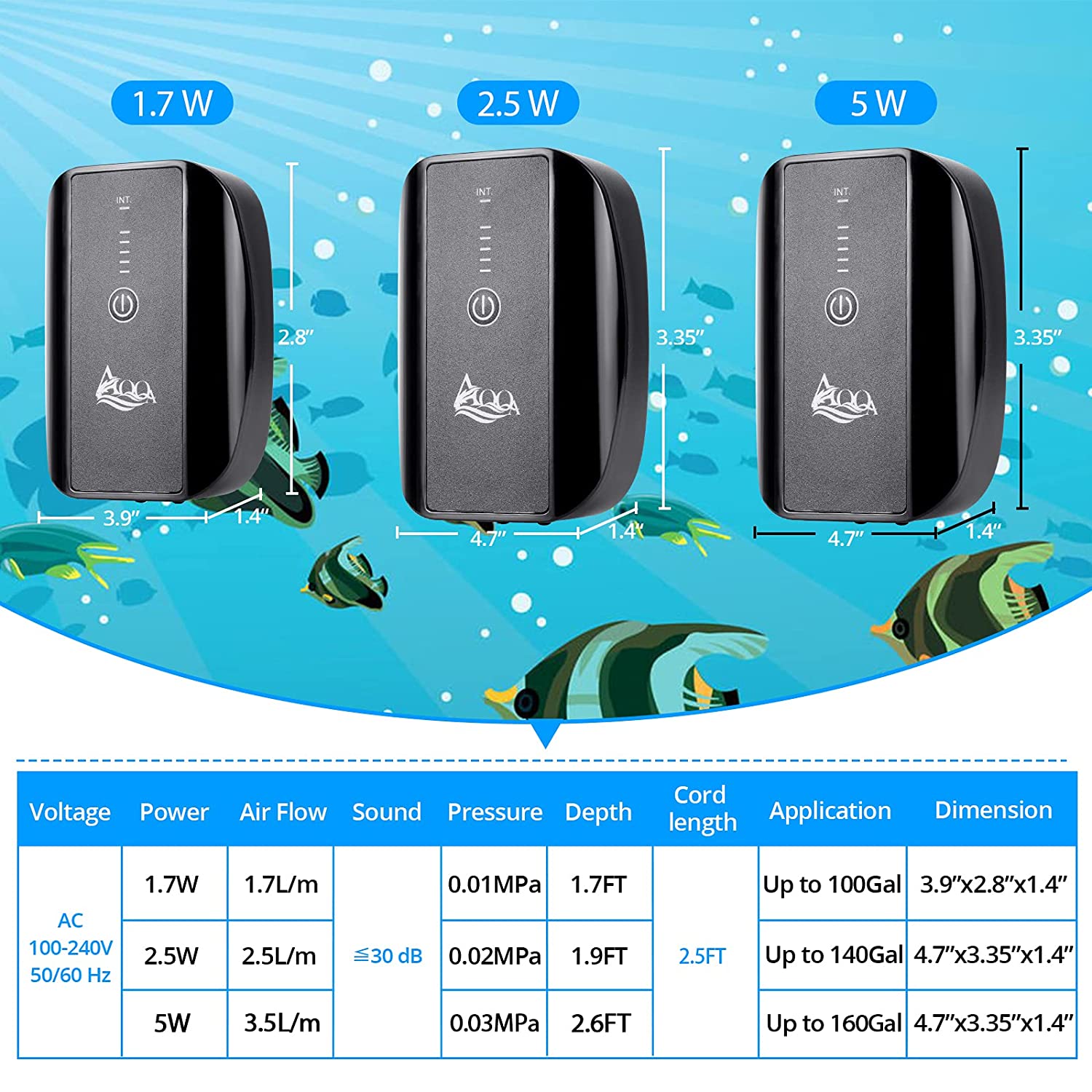 - Accessories Includes: 2 x Air Stone, 2 x Air Tubing, 1x USB Power Cord.