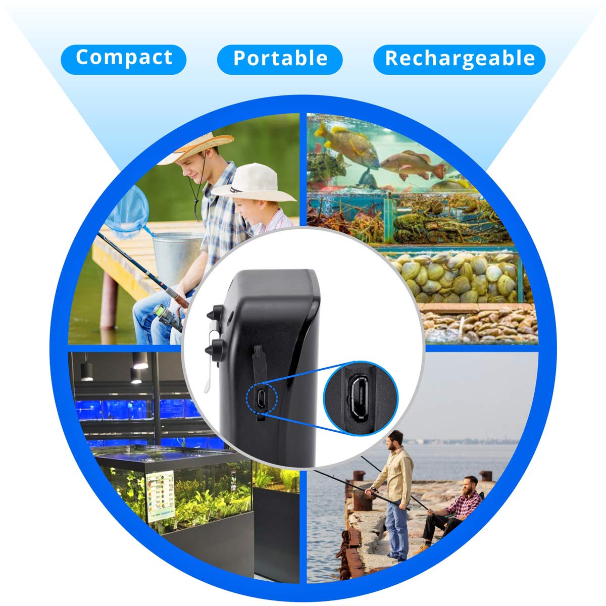 AQQA Aquarium Air Pump, Rechargeable and Portable Fish Tank Air Pump AQ-012