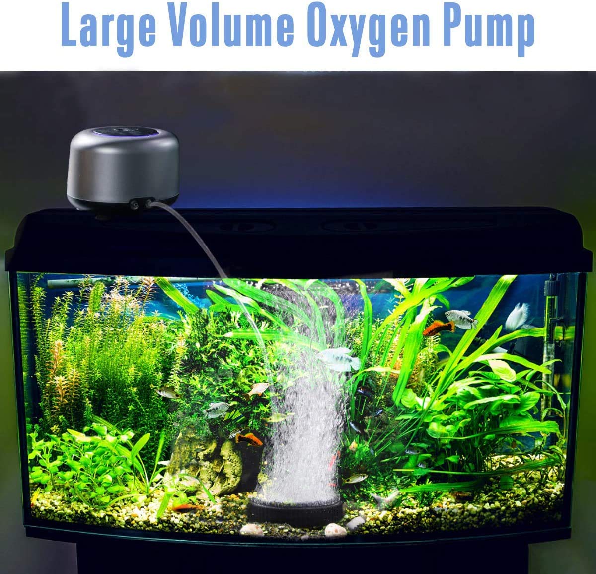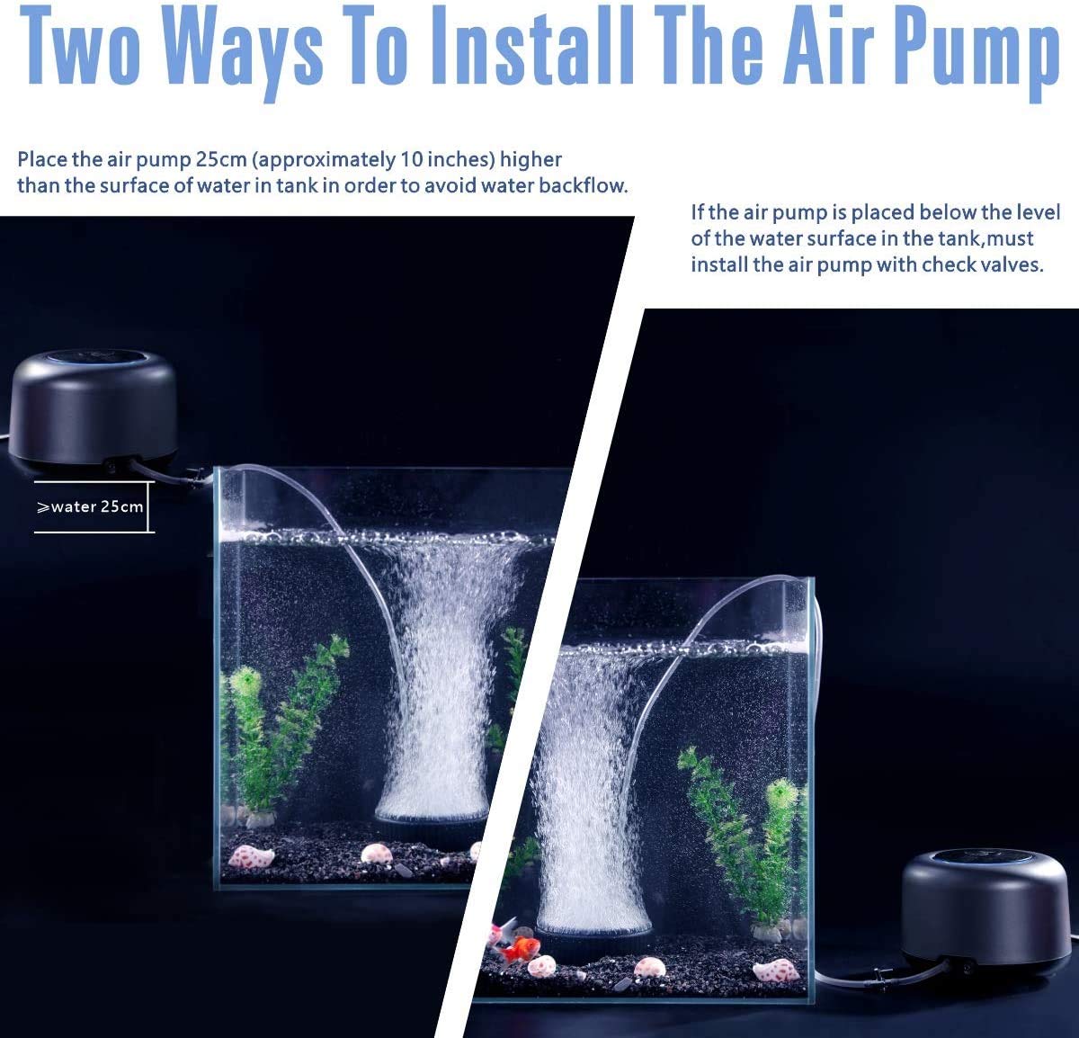 - 🔵【Ultra-quiet Energy-saving,Suitable for Both Freshwater and Marine Aquariums】Use a bearing-less motor.It works using magnets, which means less vibration,resulting in lower noise than traditional bearing driven air pumps.Extra vibration and noise dampening systems on the pump further reduce the noise,making this ultra-quiet air pump perfect for bedroom aquariums!