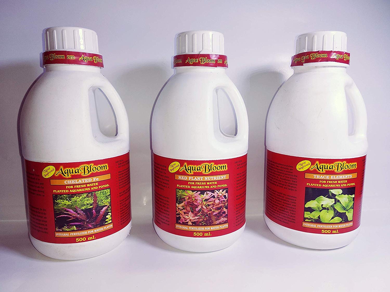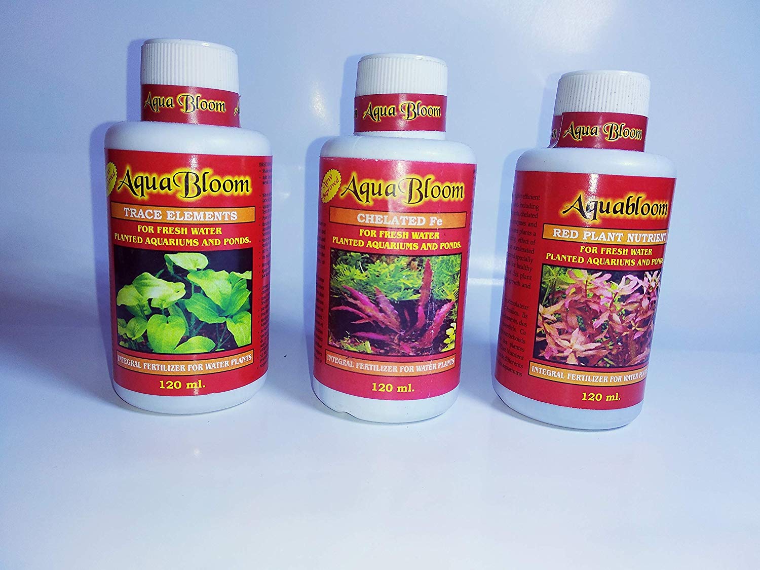 Chelated Fe-AquaBloom Chelated Fe is a highly concentrated ferrous iron supplement derived from unique organic iron compounds. Since plants require higher quantity of iron and absorb it in ferrous state, AquaBloom Chelated Fe is designed for water plants to give an enhancedcolor and texture to plants. AquaBloom Chelated Fe is harmless to fish and invertebrates. This product is safe for use in aquariums and will not interfere with normal biological filtration. Red Plant Nutrient-AquaBloom Red Plant Nutrient is highly efficient balanced nutrient for fresh water plants including macro and micro elements, trace elements, chelated iron, vitamins and natural essential nutrient enzymes as amino acids, proteins etc in specific amount giving water plants a rich and lustrous look. The long lasting effect of AquaBloom Red Plant Nutrient is an accelerated and vibrant growth of water plants prepared specially with nutrient enzymes and vitamins for healthy color enhancing. AquaBloom Red Plant Nutrient is harmless to fish and invertebrates. Trace Element -AquaBloom Trace Elements supplies a broad range of trace elements with natural nutrient enzymes demonstrated to be necessary for proper plant health and a better lush growth.Trace elements are normally depleted by utilization ,oxidation and precipitation.This procedure makes it important to restore trace elements on a regular basis giving a steadiness to water plants. Aquabloom Trace Element prevents the deformation and stunted growth of young leaves,Yellowing of the margins and deterioration of new shoots,paling of old leaves,chlorosis,a yellowing or whitening of plant leaves and stems etc. Aquabloom Trace Elements is harmless to fish and invertebrates and also enhances the slime coat of fish due to the vitamins present.This product is safe for use in aquariums and will not interfere with normal biological filtration.Indicated dosing after water change helps prevent toxins resulting from fluctuating ph level and helps.