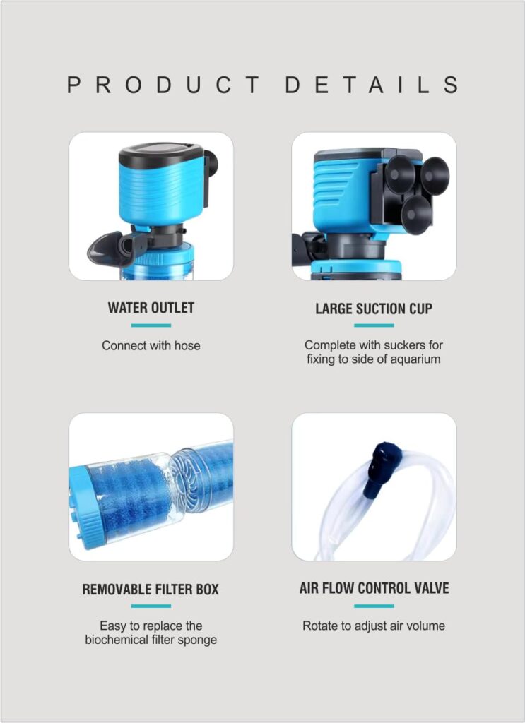 AquaNature 3 in 1 Versatile Aquarium Internal Filter Submersible Power Filter Multi Functional Water Filter Lucid Pump