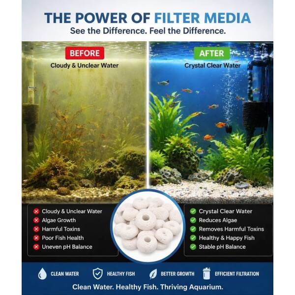 - High Porosity Bio Ceramic – Large surface area for maximum beneficial bacteria growth