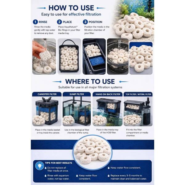 AquaNature® 3DM Circle Aquarium Filter Media High Porosity Bio Ceramic Media for Crystal Clear Water, Removes Ammonia & Toxins, Ideal for Freshwater & Saltwater Tanks NX-60