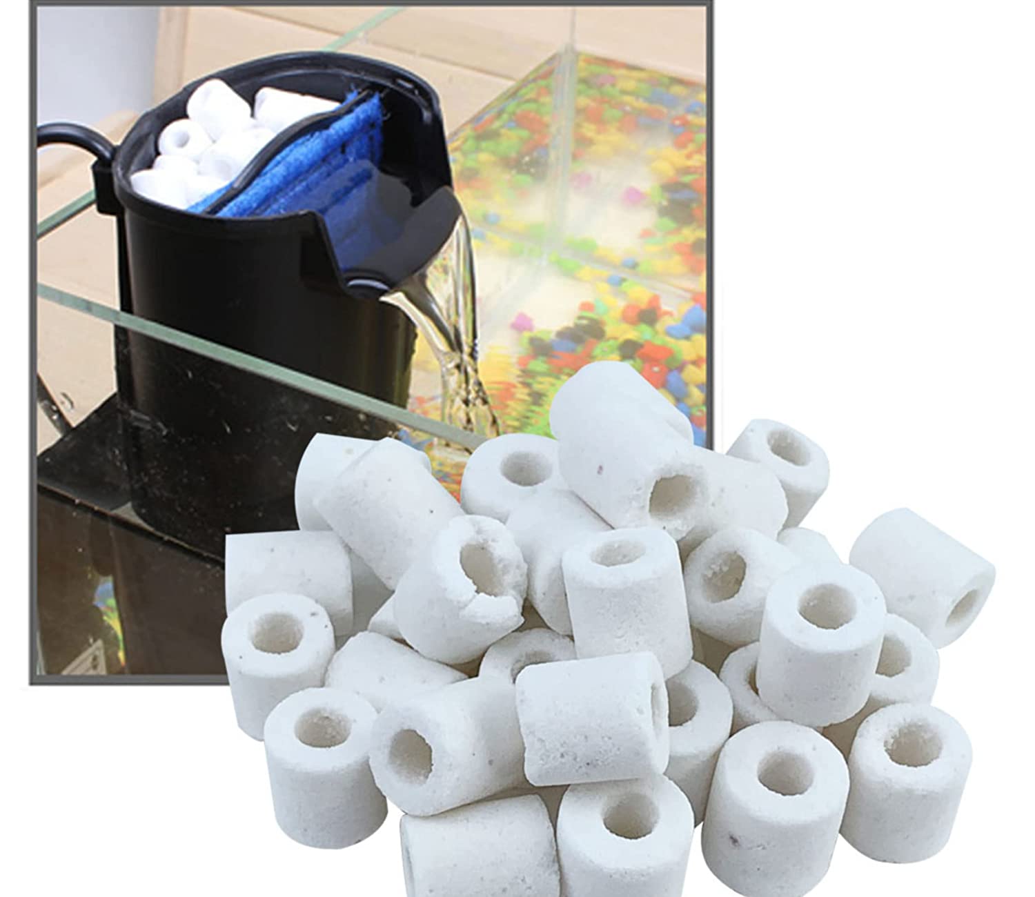 AquaNature Aquarium Porous White Bio Ceramic Ring Filter Media for Freshwater & Saltwater (A10)