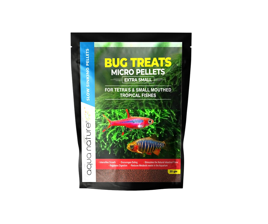 AquaNature Bug Treats Micro Pellet Slow Sinking Fish Food Extra Small for Tetra’s & Small Mouthed Tropical Fishes