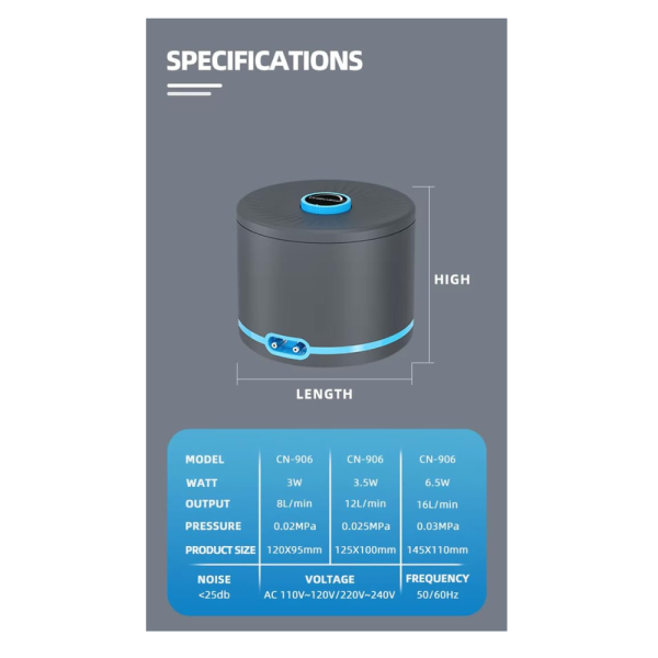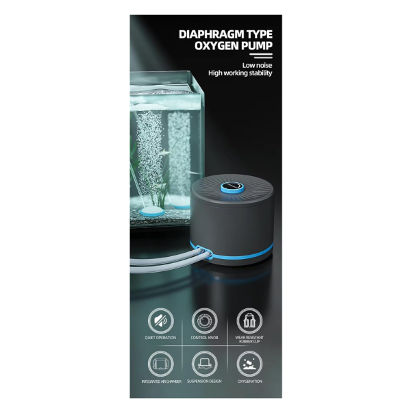- Build-in control knob can adjust the flow of air pump, to meet the different oxygen needs of fish.
