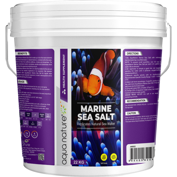 AquaNature Marine Sea Salt is made up of all of the macro elements and trace elements in a natural balance, contained within the ocean, and it is free from artificial additives, nitrates and phosphates. The trace elements remain completely soluble and bicarbonates which stabilize the aquariums alkalinity and pH. AquaNature Marine Sea Salt is an ideal foundation for the care and growth of all marine organisms in an aquarium. Use seawater prepared with AquaNature Marine Sea Salt for regular water changes in your seawater aquarium, to start a new aquarium and to re- equilibrate the pH of a tank.