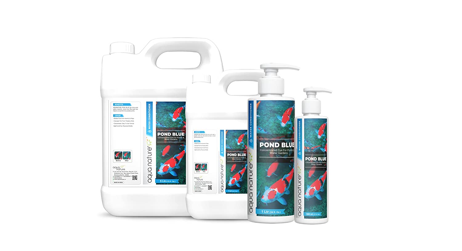 - AQUANATURE POND BLUE Dye turns pond water a beautiful, vibrant blue. Blue water also helps to conceal fish from predatory birds.