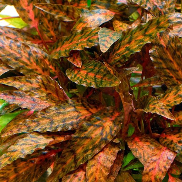 Cryptocoryne nurii is a striking species within the Cryptocoryne genus, native to the Philippines and found primarily in submerged riverbanks and shallow streams. It is known for its narrow, elongated leaves, which can vary in color from light green to dark olive with occasional reddish-brown tinges, especially under higher light. The leaves are typically smooth and lance-shaped, with slightly wavy margins that give the plant an elegant and unique appearance. C. nurii forms a rosette from a creeping rhizome and tends to grow in tight clusters, making it ideal for midground placement in aquariums.The growth rate of Cryptocoryne nurii is generally moderate, but it can be slower in the initial stages as it adapts to new water conditions