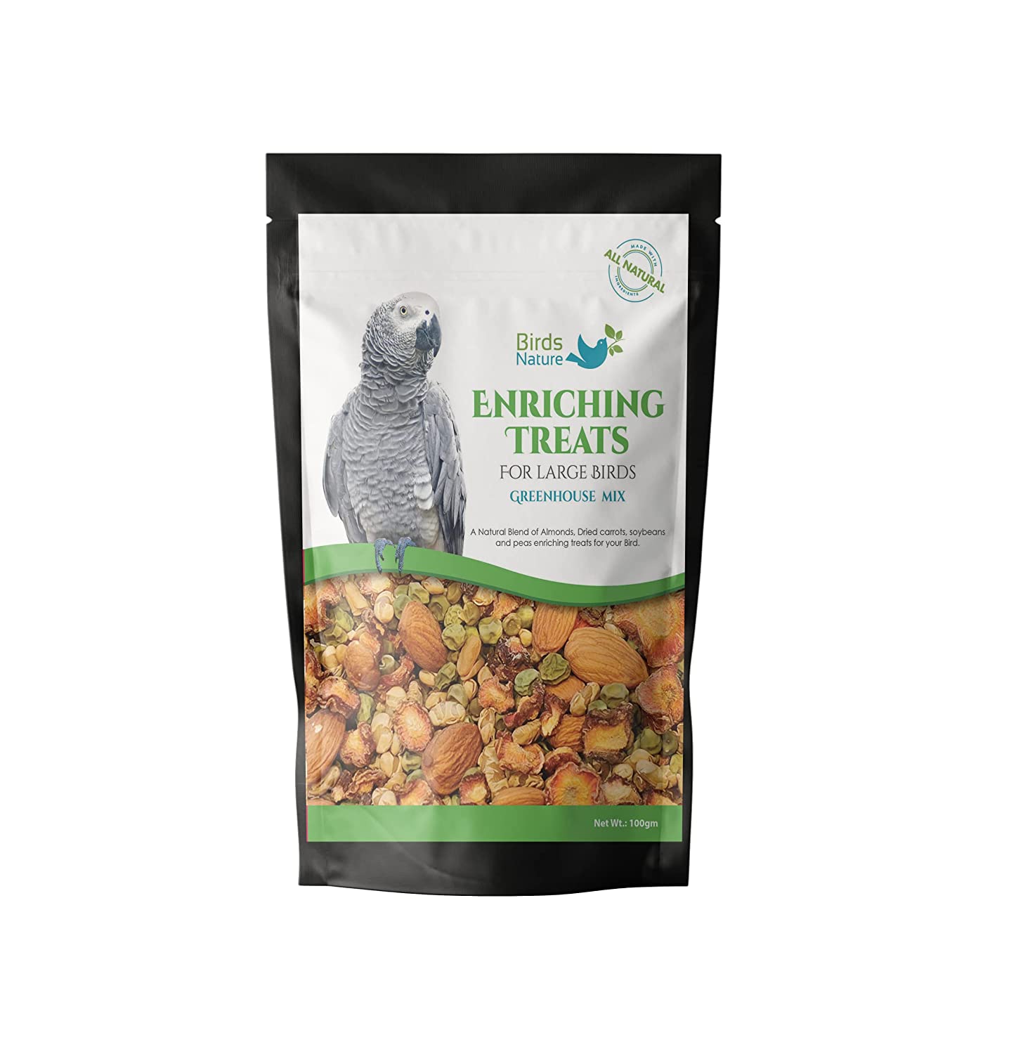 BirdsNature All Natural Enriching Treats for Large Birds (African Greys, Amazons, Cockatoos, Conures , Macaws & Exotic Birds ) 100g (Greenhouse Mix)