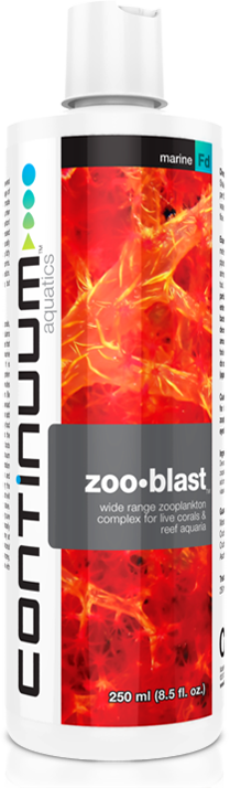 Zoo•Blast is useful for feeding hard and soft corals, sponges, filter feeding worms, tunicates and clams of all types. It is particularly suited for those that feed on mesoplankton. Many species of marine fishes will also feed on Zoo•Blast. It is recommended that you turn off your protein skimmer and other filtration for 15 to 30 minutes prior to adding the Zoo•Blast to the aquarium. Be careful when feeding liquid foods, not to overload the system. It is recommended that you not add more than the recommended dosage of any food per day. Continuum recommends that the hobbyist vary the types and sizes of foods delivered into the reef aquarium. Other Continuum foods that make good choices for this food rotation include Coral Exponential, Ocean Snow, Micro•Blast and Phyto•Blast. Also, occasionally blending the foods and using them as soaks for other foods will give your invertebrates a variety simulating nature. Vary the time of day for feeding, as well, being sure to feed at night for those organisms that primarily feed nocturnally. Many corals feed primarily at night, extending their tentacles and mesentarial filaments, using their nematocysts to capture prey, and entrapping prey on their sticky tentacles with mucus and drawing it into their mouths.