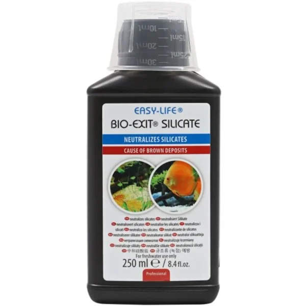 Bio Exit Silicate from Easy Life neutralizes silicates in the aquarium. Silicates occur naturally in all water, they can also be released from the substrate. An increase in the silicate level in the aquarium can promote the growth of diatoms, which can form a brown coating on plants and soil. These diatoms are neither toxic nor harmful. The brown coating formed by the algae is usually not a pretty sight. Bio-Exit Silicate acts quickly and efficiently against silicates.