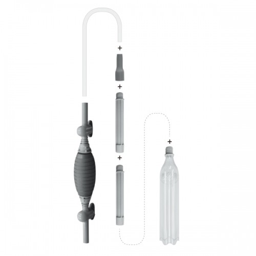 Instruction: •Connect the suck-up bottle with syphon hose and pump the rubber ball to makes the flow starts. Clean the gravel by water circulation inside the suck-up bottle, adjust the valves beside the rubber ball to control the water flow, than the sludge and waste can be sucked out magically. (hang down the balance of hose lower than aquarium, and now the narrow of the valve is directed out from the aquarium) •Remove the end hose to be connected to faucet, change the direction of the valves to fill up the water.