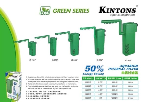 Kinton 50% Energy Saving Aquarium Internal Filter with Spary Bar for Freshwater & Marine Aquarium