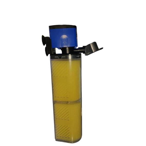 An air driven filter which effectively oxygenates and filters aquarium water. 2. Biological, chemical and mechanical filtration is maximized by a three level filter system which effectively traps debris and biologically cleanses water. 3. Removable filter box makes it easier during installation or maintenance. 4. Fully adjustable water and air flow rate gives you the flexibility of diverting the water flow and at the same time regulate the output volume.