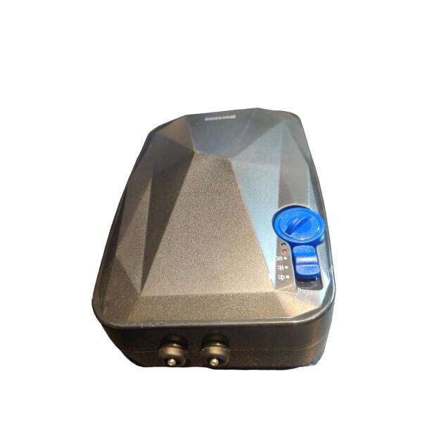 • AC/DC auto transmission ensures a continuous supply of aeration to aquariums. • Houses an energy saving battery to maximize output and minimize noise and vibration. • Suitable for all aquariums. • Continuously provides air for 24 hours during power failure, or up to 38 hours in intervals.