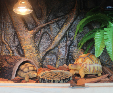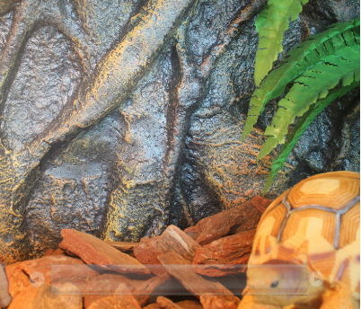 the plate can be easily cut to adapt to a variety of sizes box. Imitation rock, three-dimensional tree modeling, giving pet a natural environment.