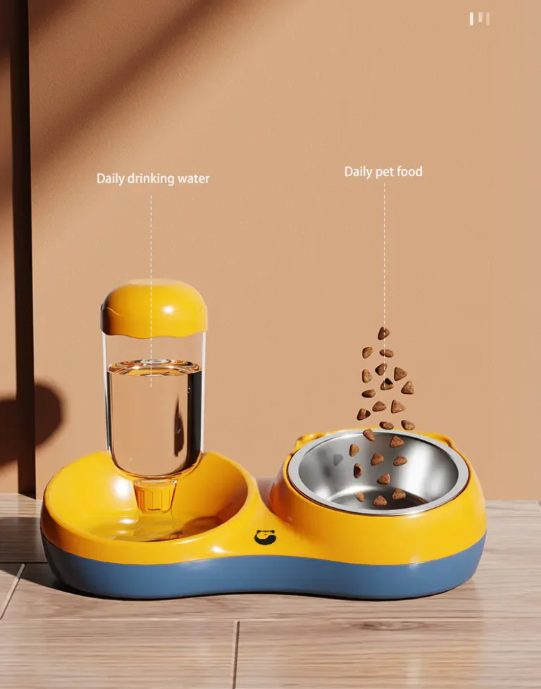 The pet starts from eating and drinking ,Cat and dog universal pet automatic refilling double bowl A bowl of dual-use food and drink, Eat, drink water, eat and drink a set of tablewareAutomatic water renewal without water shortage for 7 days , 16 ° tilt angle to protect cervical spine Reduce the pressure on the cervical spine, bow your head without fatigue, and eat comfortably Fully removable and easy to clean , Clean thoroughly without dead spots, reduce the breeding of bacteria, and prevent cats from black chin , Stainless steel bowl body is durable and sanitary Drop resistant, durablxe and easy to clean , High quality materials are not easy to be damaged ABS material, non-toxic and , Large stable base odourless , Non-slip and anti-slip.