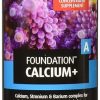 A successful coral reef aquarium depends on how well you maintain the water parameters which are the key to a stable coral environment. All of the elements found in natural seawater play a role in providing optimal water parameters, but some are more significant than others. These elements, the foundation of the reef environment, include the three major elements: Calcium (Ca), Magnesium (Mg) and Carbonates (CO3). All three have a major effect on water chemistry (pH stability, Alkalinity, ionic strength) and on many of the coral’s biological processes (skeleton formation, ions exchange, photosynthesis).The foundation elements complement each other in the formation of coral skeleton. If not balanced correctly one of the elements will quickly limit healthy coral growth.Maintaining balanced levels of the Foundation Elements (Ca, KH Mg) creates optimal water conditions for promoting strong and healthy coral growth. Reef Foundation A is a Calcium Strontium complex for balanced formation of Coral Skeleton.Reef Foundation A: Contains Calcium, Strontium, and Barium according to the ratios found in coral skeleton. Concentration: 1ml will raise the Ca level of 100 liters (25 gal) by 2ppm. – Foundation A supplement contains calcium, barium and strontium, which benefit the ratios in coral skeleton. – Effective in raising the calcium levels in corals. – Just 1ml will raise the