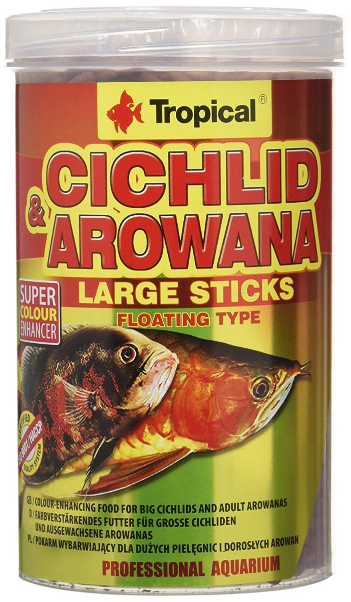 - A multi-ingredient coloring food in the form of floating sticks, designed for everyday feeding of large cichlids, adult arowanas and other species of omnivorous and carnivorous fish that reach considerable size.