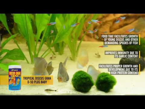 TROPICAL DISCUS GRAN D-50 PLUS BABY high protein food supporting the growth of young discus. Slow-sinking granules with an extremely high content of highly digestible protein (55%) for young discus. Animal and vegetable raw materials have been selected so as to provide the growing fish with a wholesome protein, rich in all necessary essential amino acids necessary for healthy growth. The immunity of young fish strengthens beta-glucan and active substances present in garlic, yeast, spirulina and Kelp algae. Egg yolks are a source of easily digestible lecithin, necessary for the development and functioning of the body. To meet the high demand of omega-3 fry, nutrients rich in polyunsaturated fatty acids, including marine crustaceans and fish oil, were added to the diet. Young discus regularly fed with TROPICAL DISCUS GRAN D-50 PLUS BABY grow fast and develop properly, obtaining the necessary nutrients in the right proportions. The food can also be used for feeding juveniles of other fish species with high nutritional requirements.