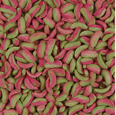 Koi Croissant Color multi-ingredient food in an attractive form of two-colored, floating sticks with a shape similar to a croissant. Intended for everyday feeding of koi, crucian carp, golden tench and other cyprinids living in garden ponds. The astaxanthin and carotenoids contained in the food, which are present in paprika and marigold, intensify the colors of the fish, and also have a positive effect on their overall condition and health. Vegetable ingredients, rich in fiber, regulate the work of the digestive tract. The natural resistance of fish is strengthened by garlic extract, which also has a positive effect on the digestion process. Sticks are characterized by high hydrostability, which prevents the water from getting dirty. Due to the reduced content of phosphorus, the food is not conducive to the growth of algae in the pond.