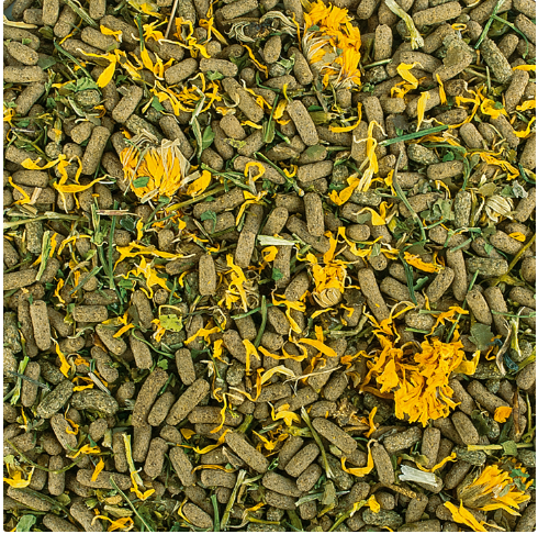 – multi-ingredient food with the addition of parsley leaves, marigold flowers, blackberry leaves and dandelion leaves