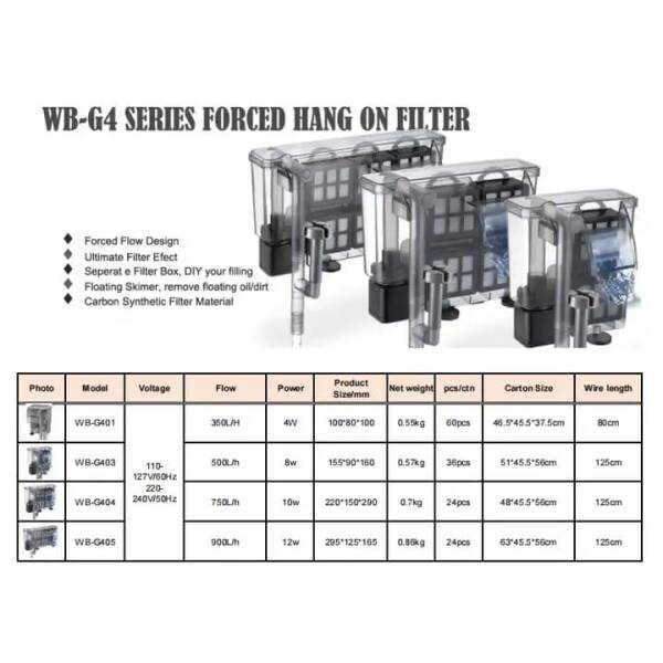 | Size (Upto) | WB-403( 8w , 500L/H), WB-404( 10w , 750L/H), WB-405( 10w , 750L/H) |